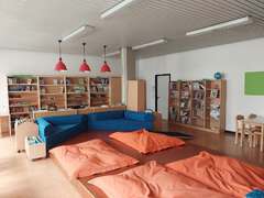 Unsere Schulbücherei wurde in den letzten Jahren umfangreich modernisiert und ist mit Sachbüchern, klassischer sowie aktueller Kinder- und Jugendliteratur, als auch TipToi-Material ausgestattet. Gemütliche Sofaecken und Sitzkissen schaffen eine entspannte Leseatmosphäre.