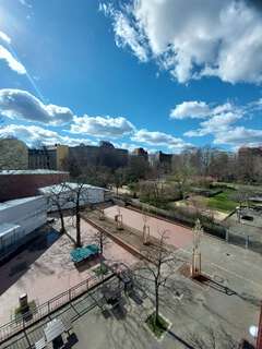 Unsere hellen und großzügigen Räume laden zum Lernen und Verweilen ein. Neben den Klassen- und Gruppenräumen können die Schüler*innen viele unterschiedliche Funktionsräume nutzen. Alle Klassenräume sind mit modernen Smartboards ausgestattet. Von außen nicht zu entdecken ist unser geräumiger Schulhof - eine grüne Spieloase mitten in Kreuzberg. Schaut selbst: