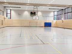 Die moderne dreifach Sporthalle kann flexibel unterteilt werden. Für sportliche Aktivitäten, sowie Schulversammlungen und Aufführungen, bietet sie den idealen Platz.