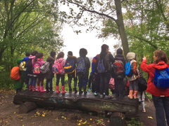 Jeden Monat geht eine Klasse mit den beiden Waldcoach*innen der Schule in die Natur. Dort werden Spiele gespielt (zum Beispiel Tierpantomime, Mathespiele uvm.), die Natur bewundert, Tierbilder aus Naturmaterialien gelegt und vieles mehr!